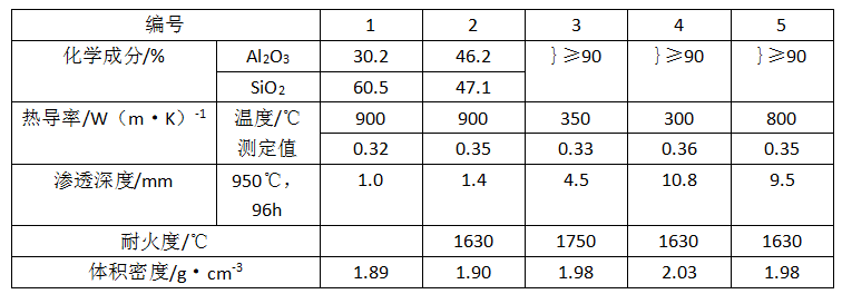 防滲透澆注料采用黏土熟料作耐火骨料,三級(jí)礬土熟料作耐火粉料,添加超微粉,用CA-50水泥作結(jié)合劑,并加分散劑和硅質(zhì)或長(zhǎng)石類防滲劑。其主要性能:Al2O3 44%,SiO2 49%,體積密度≥2.23g/cm3,110℃和1000℃燒后耐壓強(qiáng)度分別為40MPa和70MPa,1000℃燒后線變化<-0.3%,350℃熱導(dǎo)率約為0.55W/(m·K)。該料用于鋁電解槽側(cè)壁炭磚和隔熱層之間,可阻止Na和NaF等物質(zhì)的滲透,也保護(hù)了隔熱層。