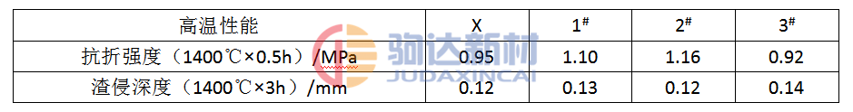 綜合各項(xiàng)性能,再生原料的替代量在17%~27%,對(duì)澆注料各項(xiàng)指標(biāo)性能的影響可以接受,澆注料的各項(xiàng)性能仍滿足使用要求。