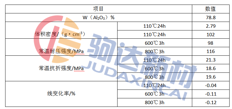 表1為所研制的鉛鋅流槽用低水泥高鋁澆注料的理化指標。
