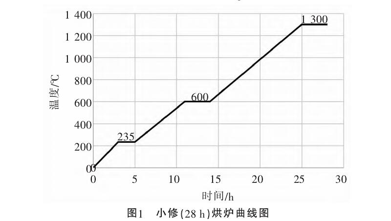 烘爐溫度上升情況基本符合烘爐溫度曲線圖表的規(guī)定。溫度上升不應(yīng)有顯著的波動,也不應(yīng)太快,否則將產(chǎn)生不均勻膨脹,導(dǎo)致砌體破壞。圖1和圖2列舉了兩種典型的烘爐曲線圖。