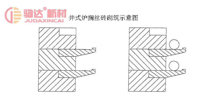 井式爐采用螺旋線狀電阻絲在加熱元件中占有相當比例,井式電阻爐是完成熱處理工藝的常規設備。傳統的井式爐的爐襯耐火層由楔形磚或扇形磚和擱絲磚砌筑而成。由于處理鍛件時料筐起吊頻繁,極易撞壞擱絲磚,造成電阻絲脫落、短路、斷絲、漏電等故障,既影響生產和安全,也降低電爐使用壽命和增加維修費用。而通過改變耐火層爐磚的形狀和爐絲安裝方式可以有效地解決上述難題。