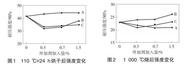 選用3種常用保存劑做試驗。分別是A,草酸(H2C204·2H0),是一種弱酸,在189.5℃或遇濃硫酸會分解生成二氧化碳、一氧化碳和水;B,一水檸檬酸(C.HO·HO),無色或白色結晶狀顆粒或粉末,175℃以上分解釋放出水及二氧化碳;C,酒石酸(C4H.O),是一種羥酸,化學式為C.H.O,酒石酸在空氣中穩定,無毒,210℃分解。所用保存劑的含量都≥99.5%,試驗原材料采用高鋁質耐火材料,結合劑為工業磷酸。