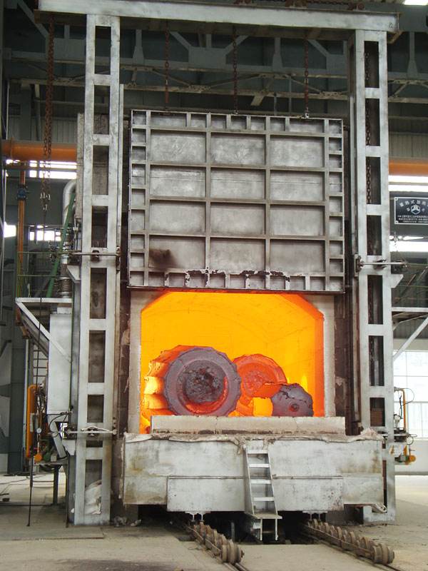 通過(guò)現(xiàn)場(chǎng)實(shí)際工作經(jīng)驗(yàn),爐墻、爐頂主要是倒塌和坍塌,或者是爐體出現(xiàn)裂紋而躥火,且損壞部位一般在蓄熱式加熱爐的高溫段,均熱段尤為突出。另外,還有部分爐墻澆注料脫落。根據(jù)爐墻倒塌形式分析認(rèn)為,首先,澆注料高溫性能偏低,尤其是荷重軟化溫度偏低。在日常生產(chǎn)中,為了滿足生產(chǎn)運(yùn)行的需求,加熱爐爐溫控制較高,均熱段一般為1250°C〜1350°C,甚至高于澆注料的荷重軟化開(kāi)始溫度,導(dǎo)致均熱段內(nèi)側(cè)墻體軟化變形,在重力和振動(dòng)的作用下,向爐內(nèi)傾斜甚至倒塌;其次,爐體出現(xiàn)不規(guī)則裂紋或料體脫落的原因, 則多是由于在施工過(guò)程當(dāng)中,澆注時(shí)澆注料加水過(guò)多、攪拌不均、施工溫度偏低或者是振動(dòng)棒震動(dòng)不規(guī)范以及烘爐時(shí)升溫過(guò)快等原因所造成。 爐頂坍塌部位也主要是在高溫段,且多發(fā)生在爐墻軟化傾斜之后。首先,在施工過(guò)程當(dāng)中,如果爐頂與爐墻之間相接觸部分處理不好,經(jīng)常在此處出現(xiàn)裂縫漏火現(xiàn)象,裂縫附近的爐頂澆注料,因失去支撐而軟化掉落,從而導(dǎo)致?tīng)t頂更大面積的漏火,嚴(yán)重時(shí),將吊掛錨固磚的鋼管及錨固鉤燒損變形,甚至?xí)粺龜啵瑢?dǎo)致?tīng)t頂局部坍塌;其次,在爐頂澆注過(guò)程當(dāng)中,由于振動(dòng)不到位,或者振動(dòng)過(guò)程當(dāng)中,爐頂錨固轉(zhuǎn)松動(dòng)沒(méi)有及時(shí)處理,形成隱患,在使用過(guò)程當(dāng)中,往往在爐頂錨固轉(zhuǎn)周圍出現(xiàn)裂縫,進(jìn)而躥火,最后導(dǎo)致?tīng)t頂部分坍塌。 針對(duì)相關(guān)問(wèn)題采取的有效措施 針對(duì)爐墻、爐頂?shù)牡顾疤扇〉拇胧?/FONT> (1)提高澆注料材質(zhì),尤其是爐墻澆注料材質(zhì),由低水泥澆注料改為超低水泥澆注料,要求Al203≥65%, CaO含量0.21.0%,以提高其高溫工作性能,如荷重軟化開(kāi)始溫度、高溫體積穩(wěn)定性及熱震穩(wěn)定性等。所用保溫、絕熱耐火材料的選用,都要保證爐墻、爐頂外表面溫度符合國(guó)家標(biāo)準(zhǔn),在經(jīng)濟(jì)效益允許的情況下,甚至更低,降低爐體外表面熱量損失。 (2) 保證耐火材料供貨質(zhì)量,所有耐火材料都要有質(zhì)量說(shuō)明書:對(duì)主要耐火材料隨機(jī)抽樣,送到具國(guó)家資質(zhì)的檢驗(yàn)機(jī)構(gòu),對(duì)相關(guān)性能指標(biāo)進(jìn)行檢驗(yàn)。特別是爐頂錨固轉(zhuǎn)、爐墻錨固轉(zhuǎn)、高鋁磚、黏土磚、輕質(zhì)磚等,首先進(jìn)行外觀檢查,堅(jiān)決淘汰表面有裂紋、尺寸缺失和不符合公差要求的耐火磚,在材料供應(yīng)上提供 有力的保證。 (3) 爐墻澆注時(shí),嚴(yán)格按照澆注料使用說(shuō)明及廠家要求加水量(加水量最好控制在4%〜7%)和添加劑量,先干攪拌2〜3 分鐘,然后按比例加水?dāng)嚢?分鐘左右,料色均勻后出料。 澆注時(shí)可采用分隔澆注,混合料邊澆注邊振動(dòng),襯體一般需要連續(xù)振動(dòng)兩邊以上,直至料表面返漿、排出氣泡較少和不沉降為止。振動(dòng)時(shí)振動(dòng)棒要來(lái)回移動(dòng),不能只在一個(gè)地方振,避免局部造成過(guò)振。 (4) 正確科學(xué)留設(shè)膨脹縫,根據(jù)爐墻的高度、長(zhǎng)度及使用溫度,依據(jù)理論計(jì)算或者憑經(jīng)驗(yàn)進(jìn)行確定;爐頂要根據(jù)使用的溫度及爐頂寬度,來(lái)確定沿爐長(zhǎng)及爐寬方向的膨脹縫間隔及數(shù)量,依據(jù)膨脹縫留設(shè)位置,在施工中將波紋脹縫板直接放入。并在其左右兩側(cè)用振動(dòng)棒振動(dòng)密實(shí)。 (5) 烘爐時(shí),對(duì)于新建蓄熱式加熱爐應(yīng)嚴(yán)格按照耐火材料廠家提供的烘爐曲線進(jìn)行烘爐;舊爐烘爐亦應(yīng)按照小修、中修、大修后的烘爐曲線進(jìn)行烘爐,不應(yīng)以犧牲爐體壽命為代價(jià),來(lái)?yè)Q取極短的提前生產(chǎn)時(shí)間。停爐時(shí),嚴(yán)禁為加快降溫速度而向爐體澆水。最好選擇先向爐內(nèi)置換冷坯料,帶走部分熱量,然后將坯料清空,使?fàn)t體自然冷卻的方式,對(duì)爐體進(jìn)行良好的維護(hù)。 (6) 日常生產(chǎn)中,做到均衡生產(chǎn),不追急火,不燒高溫,實(shí)現(xiàn)坯料逐步均勻加熱,控制爐內(nèi)溫度場(chǎng),有效組織爐內(nèi)煙氣的流動(dòng),進(jìn)而延長(zhǎng)蓄熱式加熱爐的使用壽命。
